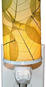 Eangee Home Design Cylinder Night Light Green Shade Made of Real Banyan Leaves 3 Inches Length x 3 Inches Width x 7 Inches Height (624 g)