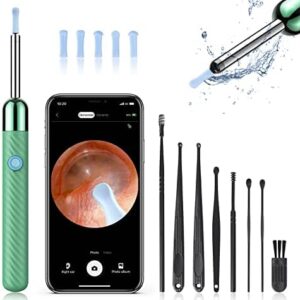Ear Wax Removal – Earwax Remover Tool with 8 Pcs Ear Set – Ear Cleaner with Camera – Earwax Removal Kit with Light – Ear Camera with 6 Ear Spoon – Ear Cleaner for iOS & Android (Green)