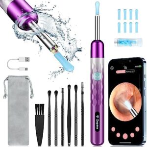 Ear Wax Removal, Ear Camera with 1440P HD, Ear Cleaner with Camera Built-in WiFi, Earwax Removal Kit with 6 Ear Pick, Otoscope with Lights, Ear Cleaning Kit for Android and iOS (Gradient Purple)