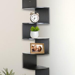 Greenco Corner Shelf 5 Tier Shelves for Wall Storage, Floating Wall Mount Shelves for Bedrooms and Living Rooms – Wall Decor, Bedroom Decor, Home Office Decor, Living Room Decor, Espresso Finish