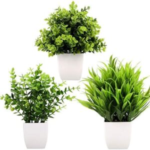 GREENTIME 3Pack Mini Fake Plants in Pots,Artificial Plastic Eucalyptus Plants,Wheat Grass Potted Faux Plants Indoor for Office Desk Coffee Table Bathroom Bedroom Home Decorations