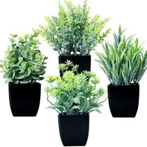 GREENTIME 4 Pack Fake Plants in Black Pot,Small Artificial Eucalyptus Potted Plant,Wheat Grass Mini Faux Potted Plants Greenery for Home Decor Indoor Office Table Room Farmhouse Bathroom Decoration